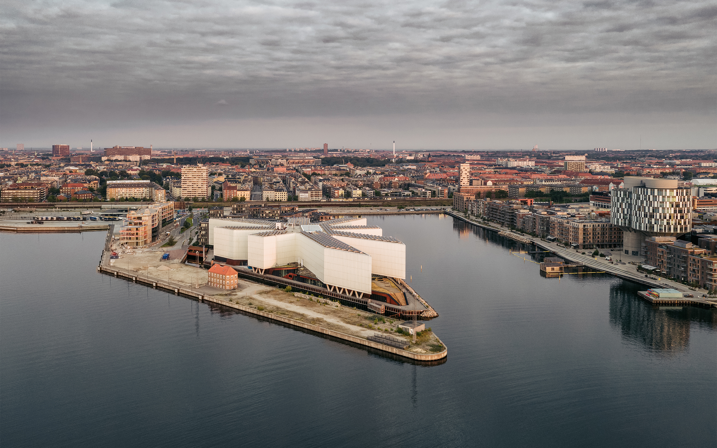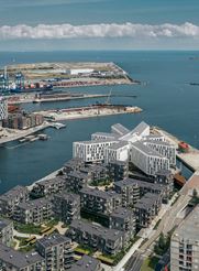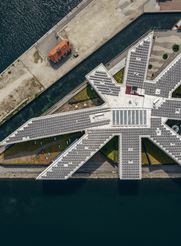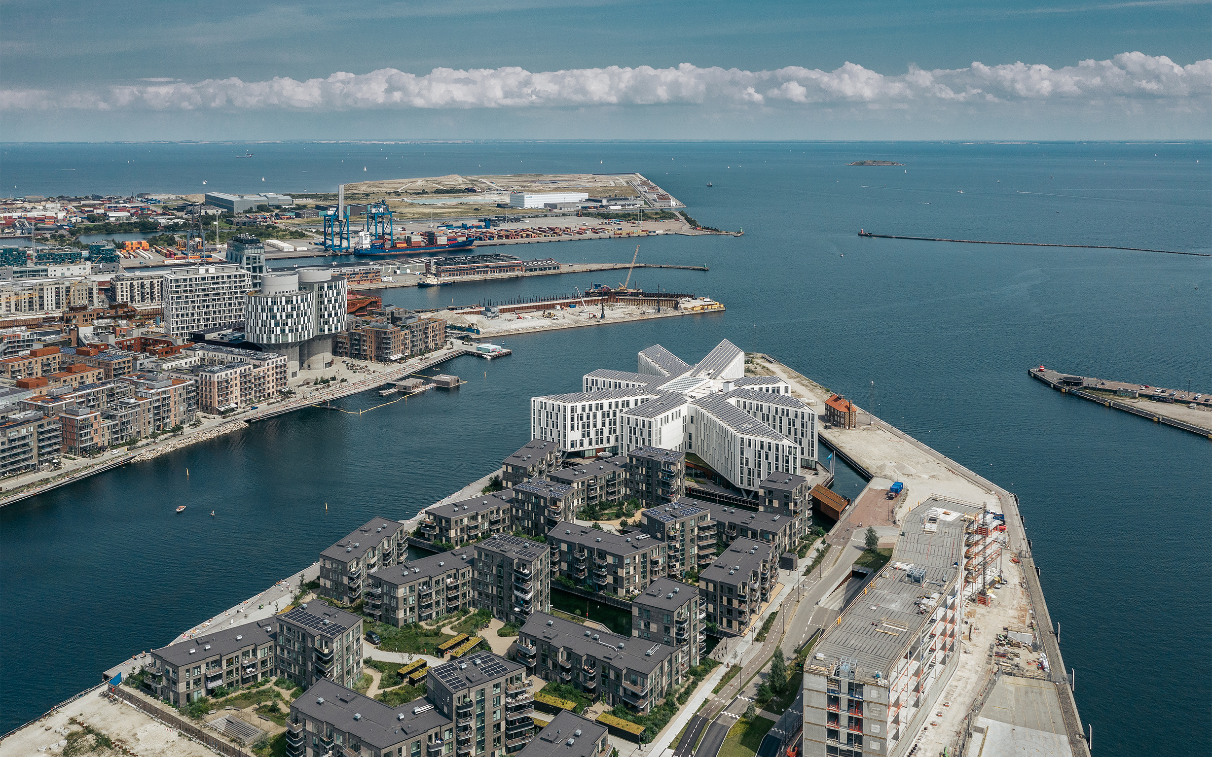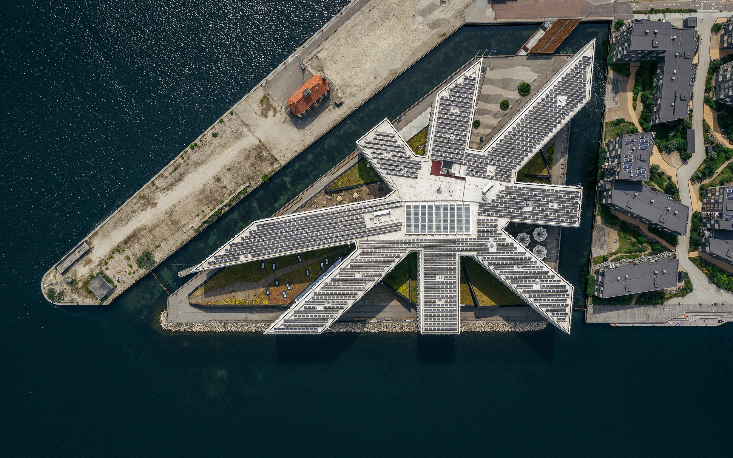 Som en otte-takket stjerne har FN-Byen lagt sig på spidsen af Marmormolen ved indsejlingen til Københavns Havn.
