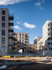 66 boliger (7.000 m2) med halvt nedgravet P-kælder (2.900 m2). Bebyggelsen er opbygget med skiftende etagehøjder med tårne i hjørnerne af bebyggelsen og med etagehøjder, der varierer imellem 3 og 7 etager.