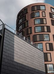 En cirkulær bygning på ti etager placeret langs Jagtvej og to lavere bygninger i henholdsvis to og tre etager blev opført i nybyggeri. Den runde bygning rummer 8 boliger på hver etage. Adgang til boligerne i den runde bygning sker enten via trapperum eller elevatortårn i midten af tårnet. I stueetagen er der indrettet fælleslokale.