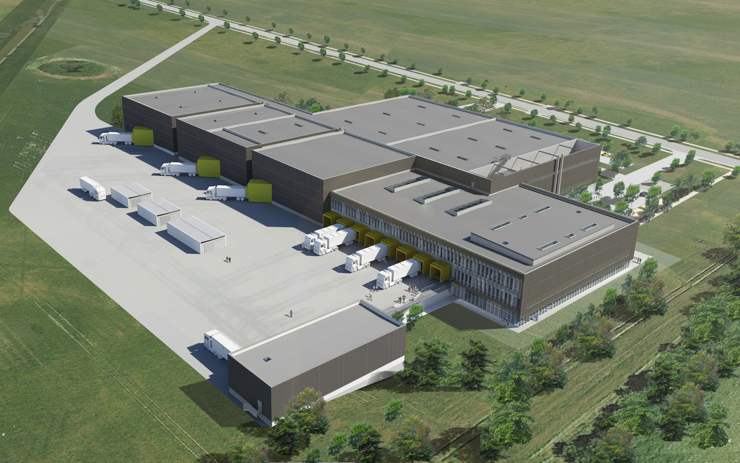 15 m høje lagerbygninger og en 3 etagers kontorbygning