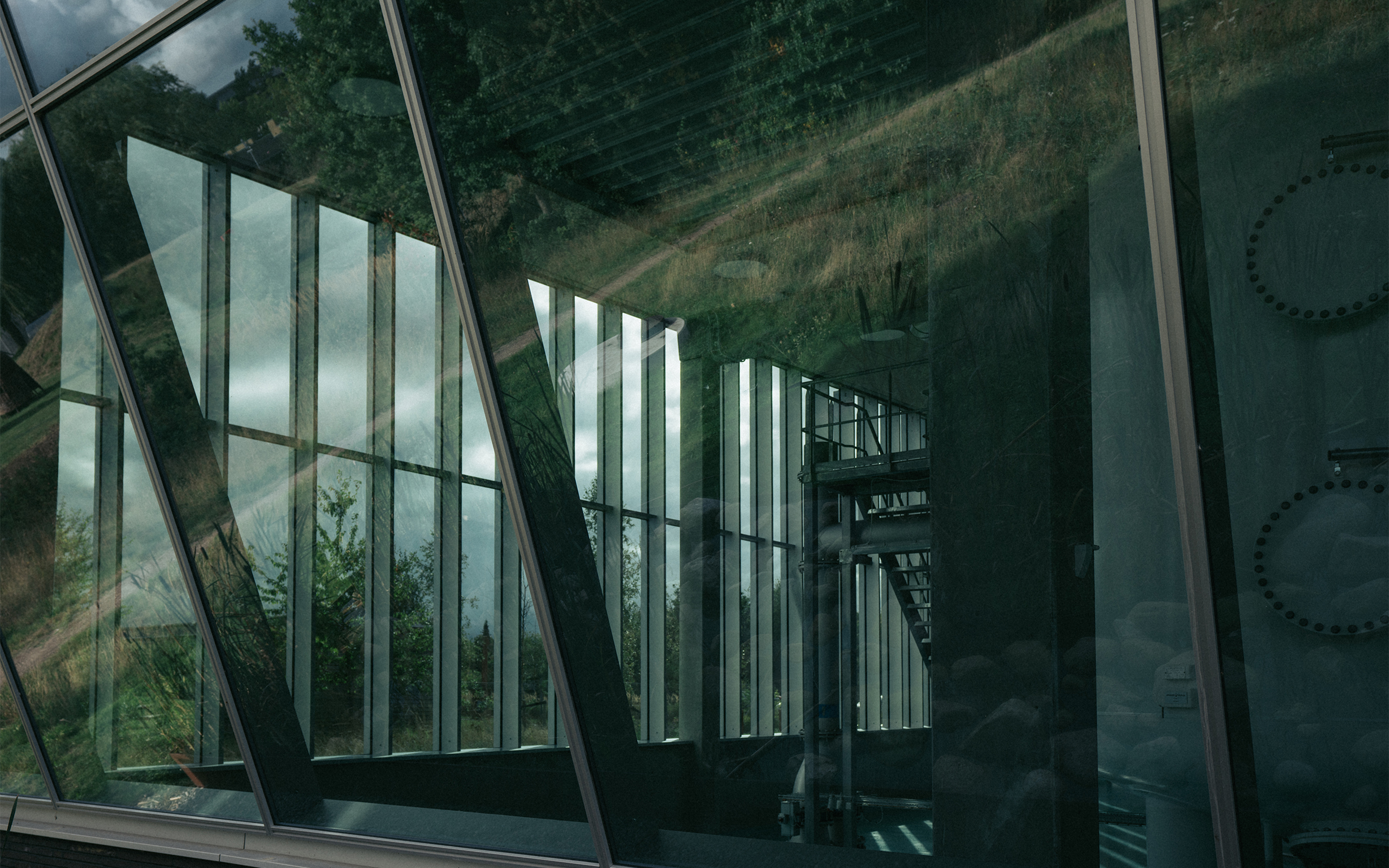 Byggeriet på 3.500 m2 er opført i 2 plan med dobbelthøj vandværkssal, teknik- og pumperum, testrum og laboratorier samt administrationslokaler på 1. sal. Bygningen er udført med et let skrånende tag afsluttet med en spektakulær vandfaldsafvanding ud over bygningens lave del. Herfra ledes regnvand via arkitektoniske vandrender til nærtliggende sø. Facaderne er udført med mørke Petersen-tegl samt store glas/alu-facader, der åbner bygningen og skaber en naturlig transparens til den store vandværkssal.