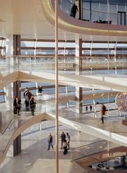 Huset er 24 m højt og opført i 14 etager, 9 over og 5 under terræn. Det samlede etageareal udgør ca. 41.000 etagemeter, heraf 12.000 m² under terræn, og indeholder mere end 1.000 rum. Det karakteristiske udkragede 158 m lange tag, fritspændende 32-45 m ud fra vestfacaden er bygningens særkende.
